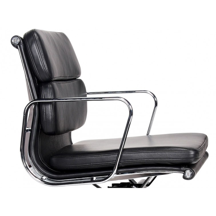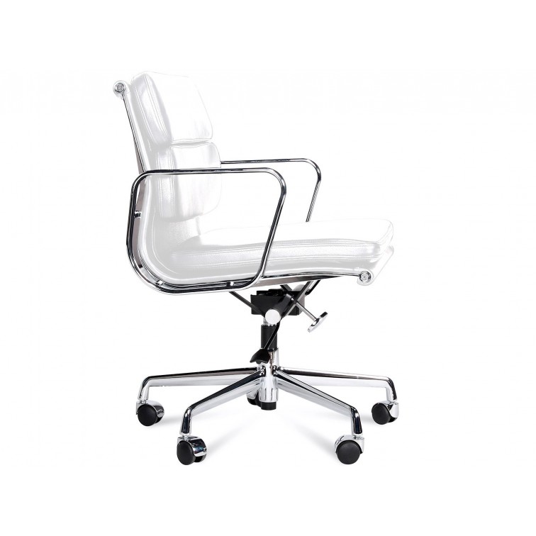 Designer-Bürostuhl mit hochwertigem Leder bezogen. Schwenkbare verchromte Aluminiumstruktur. Sehr komfortables klassisches und zeitgemäßes Design. Es kann mit Gummirädern oder festen Blöcken für Parkett montiert werden. Die Höhe ist einstellbar. Kann fest montiert werden. Ideal für große Büros, eitende Angestellte und Führungspositionen. Ähnlich dem berühmten Design Soft Pad Chair.