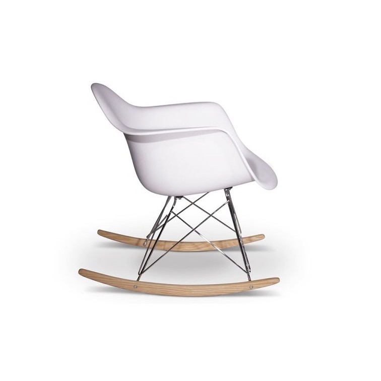 Der Rocking Lemans RAR "High Quality" Schaukelstuhl mit Armlehnen ist ein Designklassiker. Inspiriert von dem berühmten Charles Rocking Eames RAR Schaukelstuhl des ursprünglichen Designs das erstmals 1948 aus Kunststoff hergestellt wurde. Der Rocking Eames Kunststoff RAR ist ein zeitgenössischer Stuhl und bleibt im Zeitalter der Zeit. Die Holzbasis mit zusätzlicher Verstärkung im Stahlinneren, abgesehen von den Chrom-Metallstangen, macht es zu einem einzigartigen Design. Dieser Designstuhl lässt sich in aller Einfachheit mit Ihren Möbeln kombinieren.
