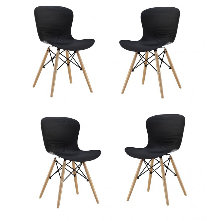Der Stuhl Tower Wood ist dank seiner Sitzschale aus Polypropylen und dem Holzuntergestell mit schwarzen Metallstreben modern und zeitlos. Dieser Designstuhl passt in jede Einrichtung.