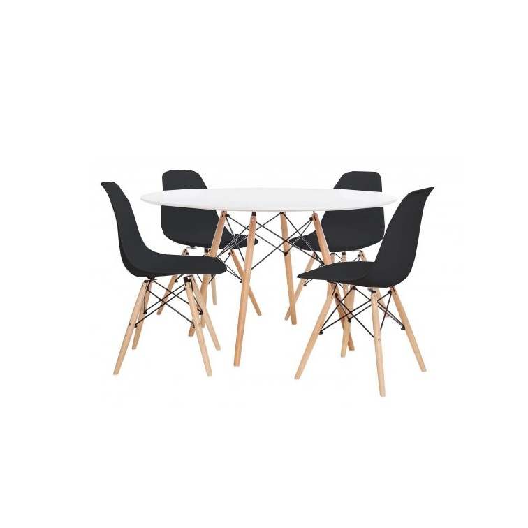 Der 120 cm große Lemans Designtisch ist ein Designklassiker. Inspiriert vom berühmten Designtisch Eames DSW ist dieser Tisch perfekt für Ihre Küche oder Ihr Esszimmer. Die Beine bestehen aus Buchenholz mit schwarz lackierten Stützverstärkungen. Das kreisförmige Oberteil besteht aus hochwertigem MDF-Holz. Unsere vom Eames-Tisch inspirierte Version passt sich perfekt jeder Umgebung an. Perfekt für 4 bis 6 Gäste.