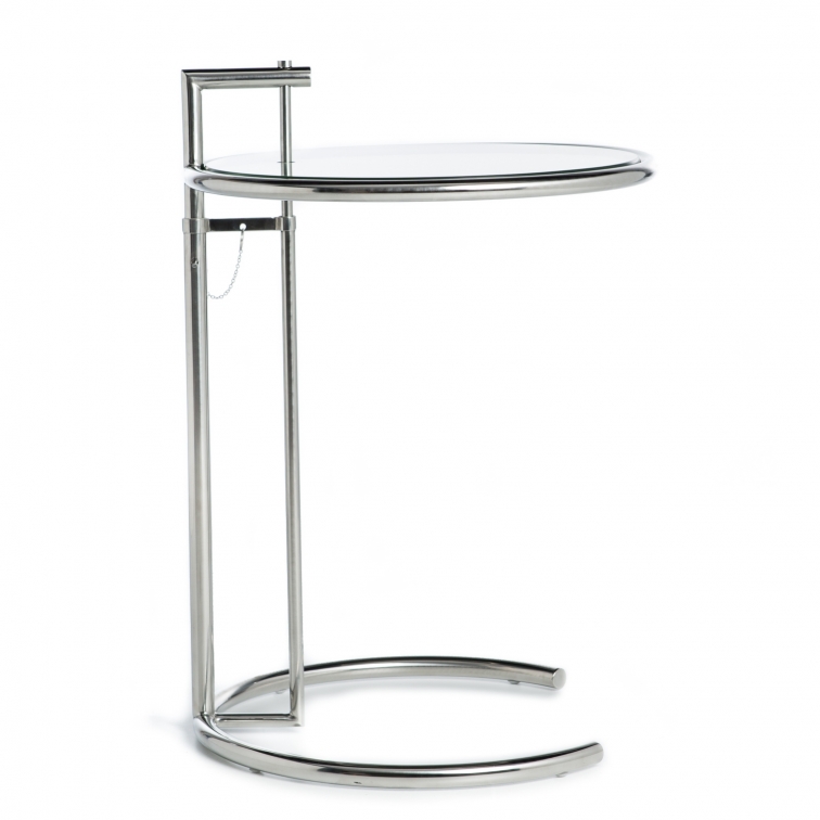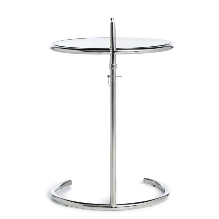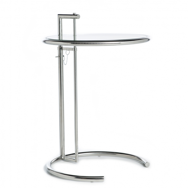Der Tisch Eileen Gray basiert auf dem Design von Katleen Eileen Gray, Architektin und Designerin irischer Möbel. Der Tisch überzeugt durch schlichte Linien und Funktionalität. Die Höhe des Tisches ist verstellbar. Dank seines geringen Gewichtes kann er im Haushalt sehr gut umgestellt werden und so überall seinen Zweck erfüllen. Das Gestell ist aus verchromtem Edelstahl hergestellt und verleiht Ihrem Wohnraum Glanz und Eleganz.