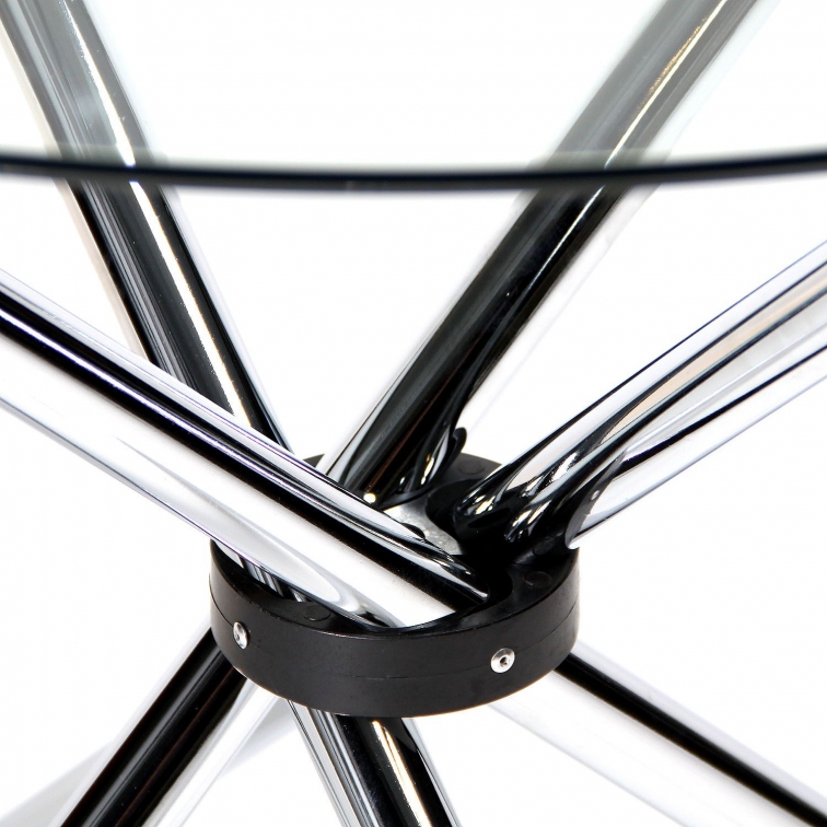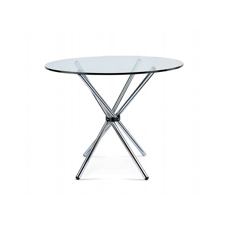 Der Tisch Round basiert auf dem Design des berühmten Tisches Mizutani. Die runde, wunderschön geschnittene Glasplatte macht ihn einzigartig. Die Tischbeine sind aus Stahlrohren hergestellt und verleihen dem Tisch einen modernen Touch. Er passt zu jeder Einrichtung.