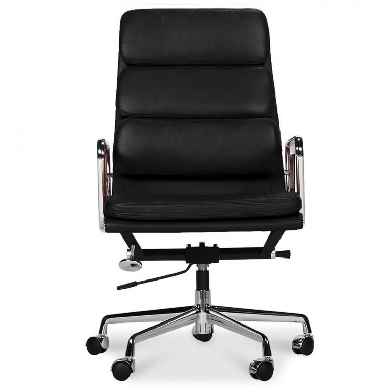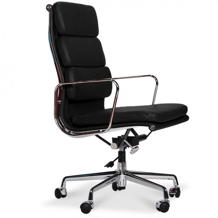 Design bureaustoel bekleed met hoogwaardig leer. Draaibare verchroomde aluminium structuur. Zeer comfortabel klassiek en eigentijds ontwerp. Het kan worden gemonteerd met rubberen wielen of massieve blokken voor parket. De hoogte is verstelbaar. Kan permanent worden geïnstalleerd. Ideaal voor grote kantoren, uitvoerende medewerkers en managementfuncties. Vergelijkbaar met de bekende Design Soft Pad Chair.