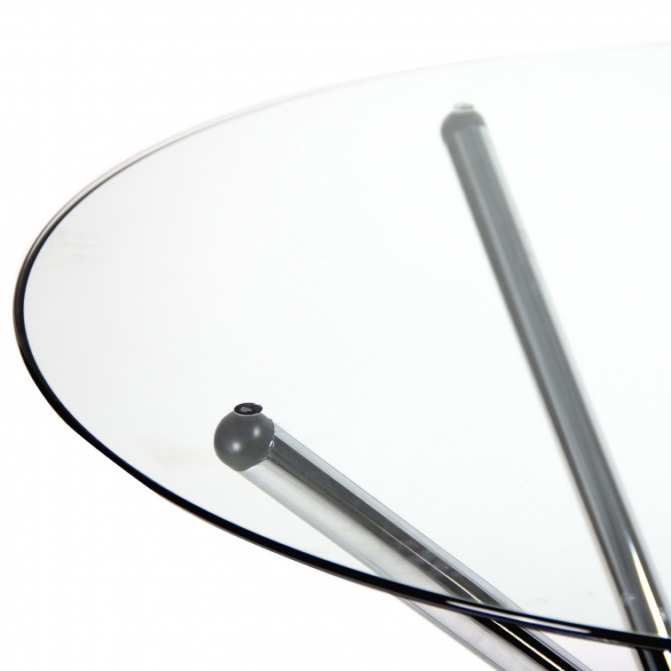 De ronde tafel is gebaseerd op het ontwerp van de bekende Mizutani tafel. De ronde, mooi geslepen glasplaat maakt hem uniek. De tafelpoten zijn gemaakt van stalen buizen en geven de tafel een modern tintje. Het past bij elke faciliteit.