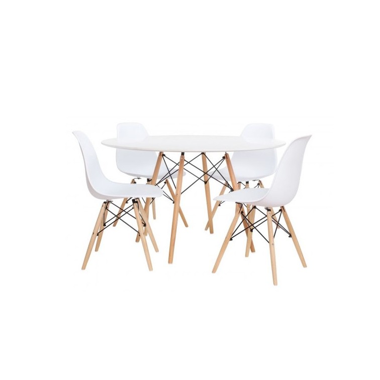 De designtafel Lemans 120 cm is een designklassieker. Geïnspireerd door de beroemde Eames DSW design tafel, is deze tafel perfect voor je keuken of eetkamer. De poten zijn gemaakt van beukenhout met zwart gelakte steunversterkingen. Het ronde bovendeel is gemaakt van hoogwaardig MDF-hout. Onze versie, geïnspireerd op de Eames-tafel, past zich perfect aan elke omgeving aan. Perfect voor 4 tot 6 personen.