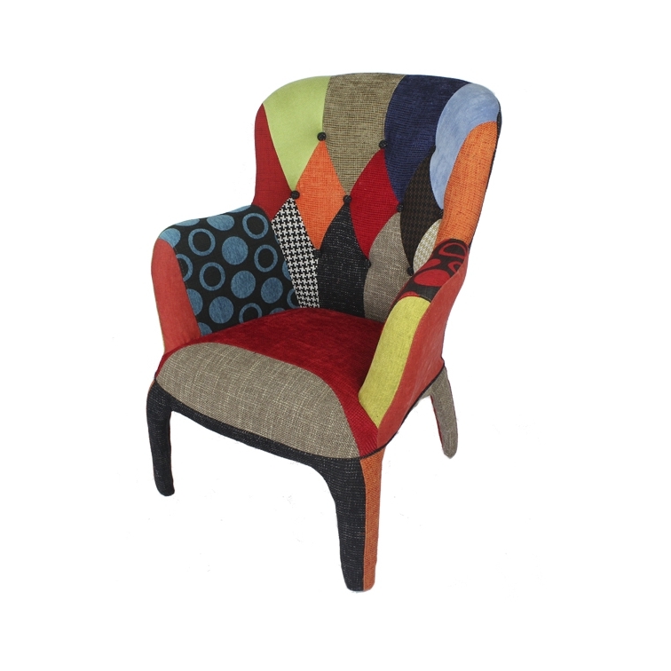 Der Designersessel ist Capitone Patchwork ist sehr elegant. Seine Rücken- und Armlehne ist gepolstert. Der Sessel Capitone Patchwork ist sehr bequem und komfortabel.
