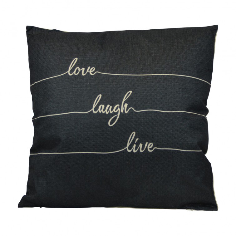 Das Kissen Love laugh Live mit Baumwollfüllung und Reißverschluss ist ein wunderschöner Deko-Artikel mit motivierenden Sprüchen. Die Maße sind 45 cm x 45 cm und der Preis beinhaltet die Füllung und den Kissenbezug. Die Kissen sind sehr komfortabel und langlebig und verleihen Ihren Wohnräumen Stil und Moderne. Sie lassen sich sehr gut mit anderen Kissen kombinieren. Der Kissenbezug ist aus Polyester, das macht die Kissen robuster und leichter zu reinigen. Der Reißverschluss sorgt dafür, dass die Füllung rausgenommen und der Bezug gereinigt werden kann. Wir bieten mehrere Modelle mit unterschiedlichen Druckmustern an: Geometrische Formen, Tiere, Totenköpfe, Pop-Style, skandinavischer Stil, usw. Sicher finden Sie das passsende Kissen für Ihre Wohnräume.